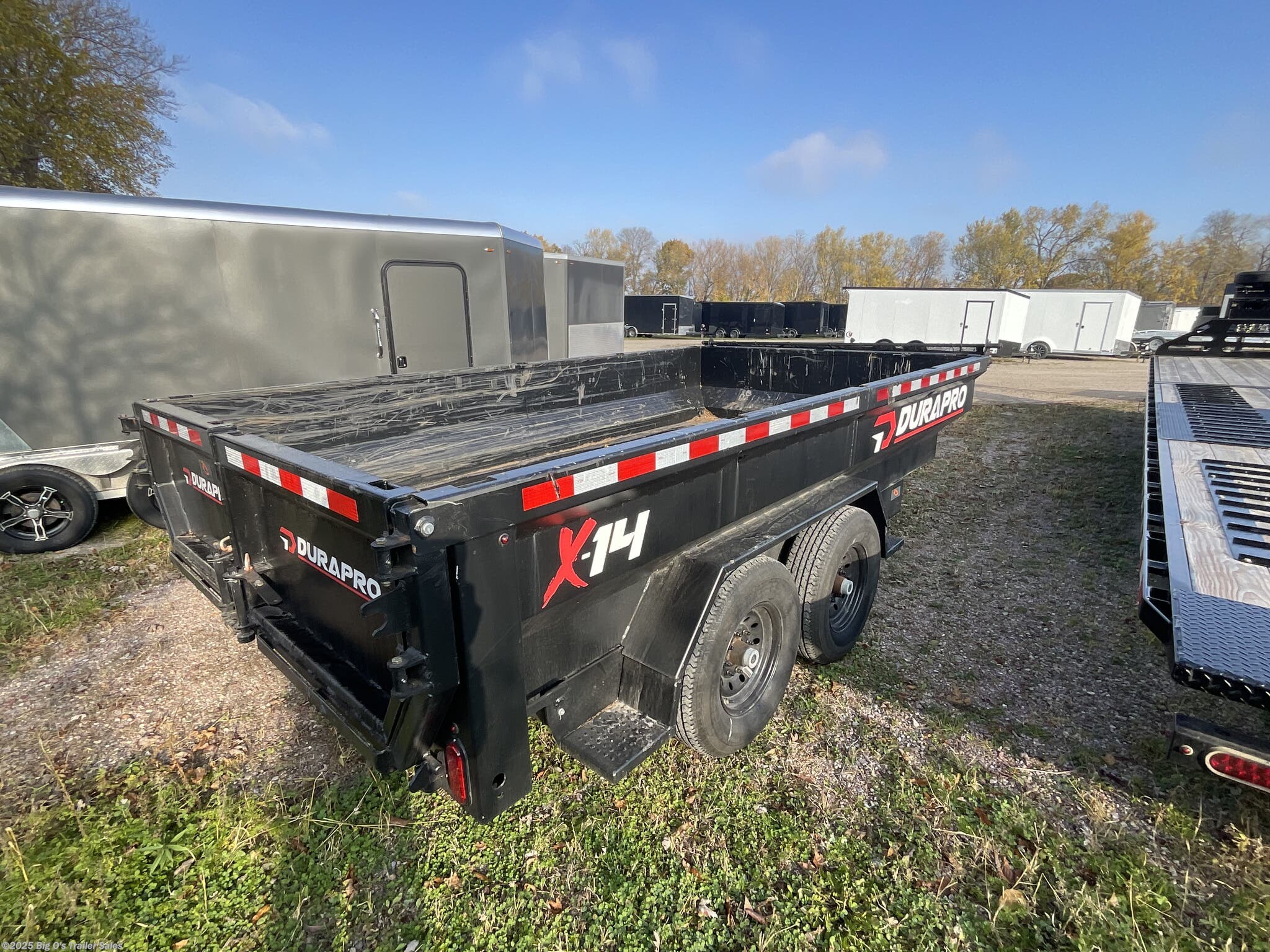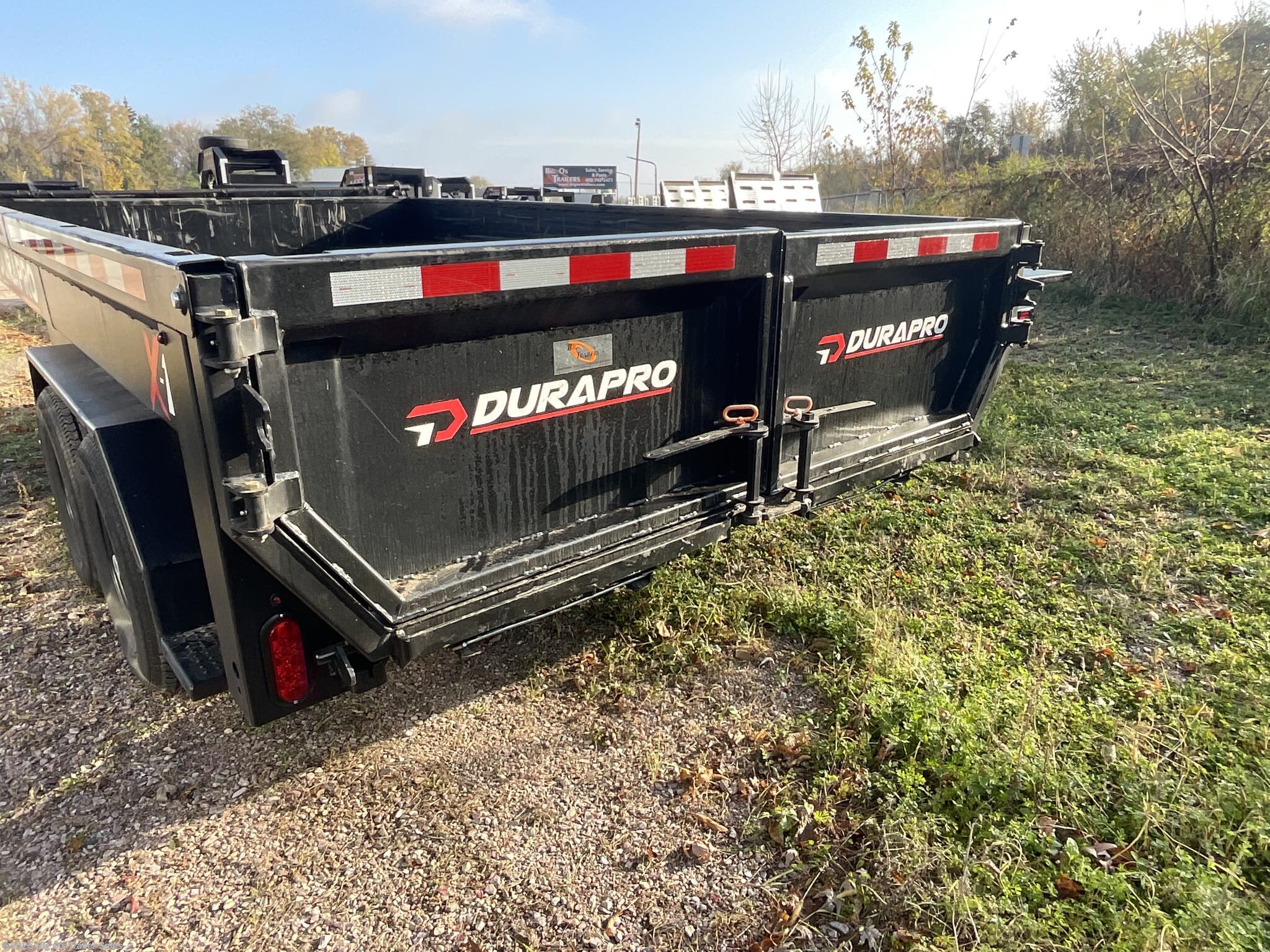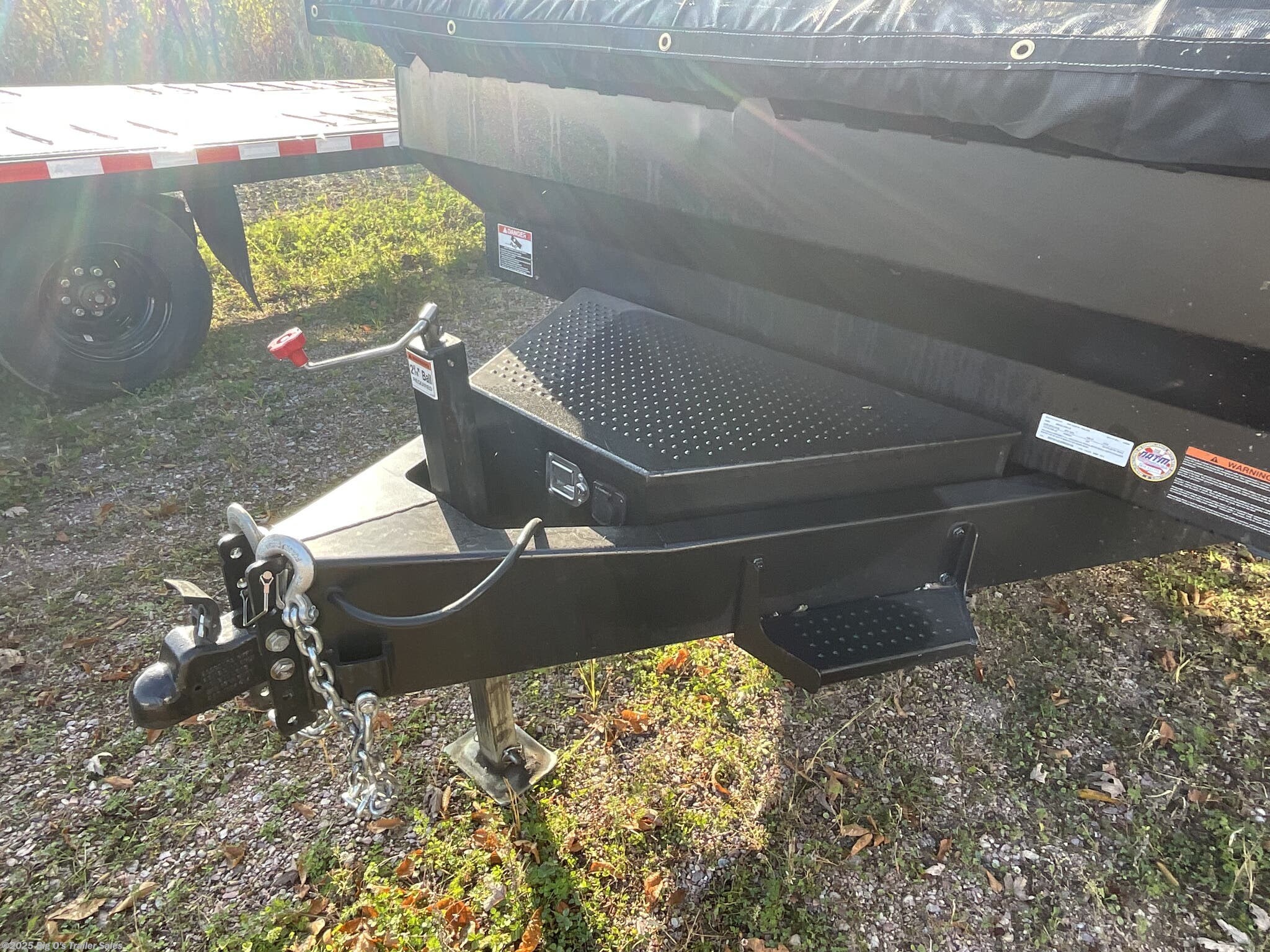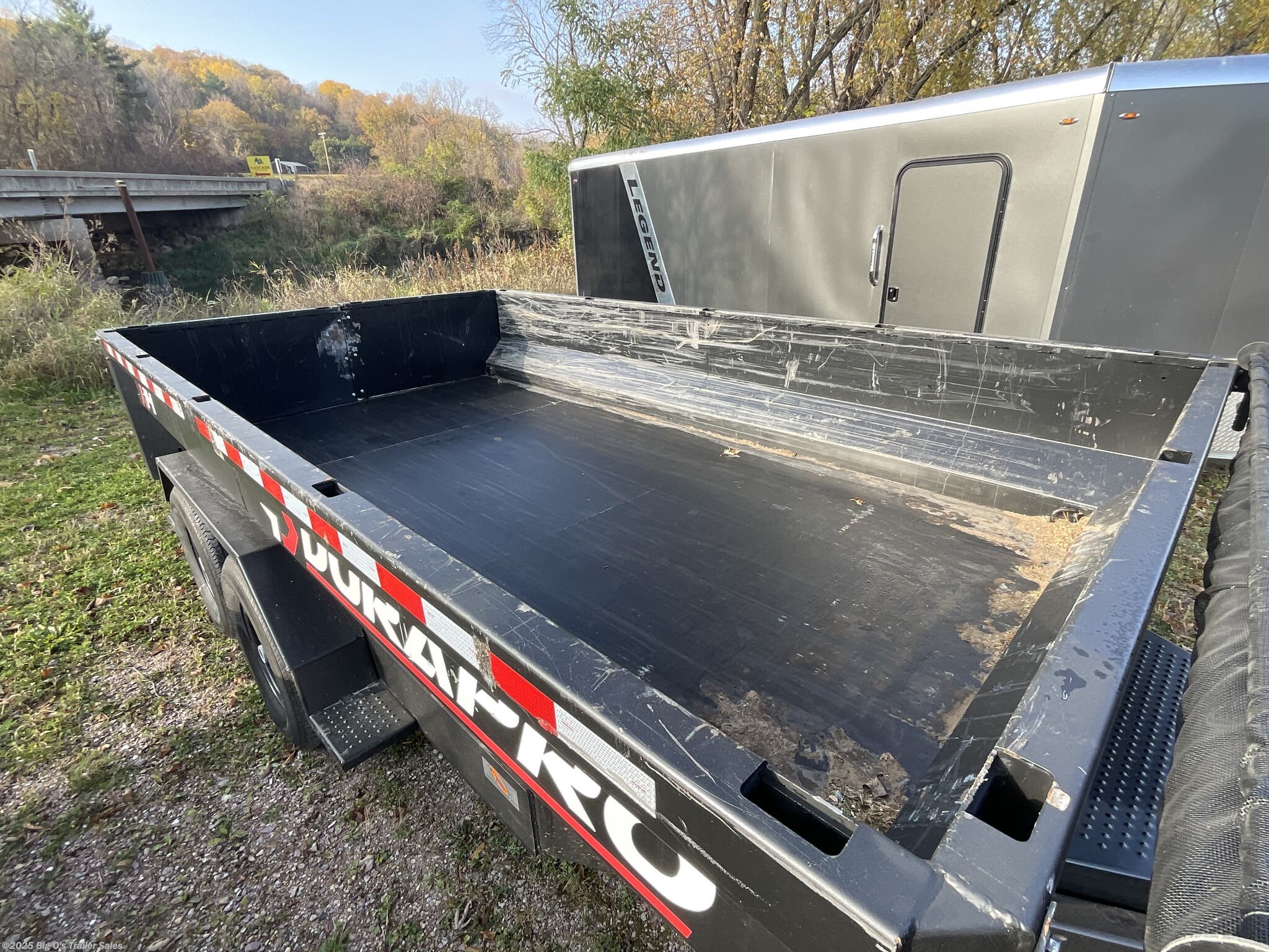 14' Dump Trailer Used Trailer GVWR 15,400# Ramps Tarp Tie Downs 4- D-rings Adjustable Coupler Corded Remote Power Down Hydraulic Pump Self Adjusting Brakes 235/80R16 LRE TED Lights