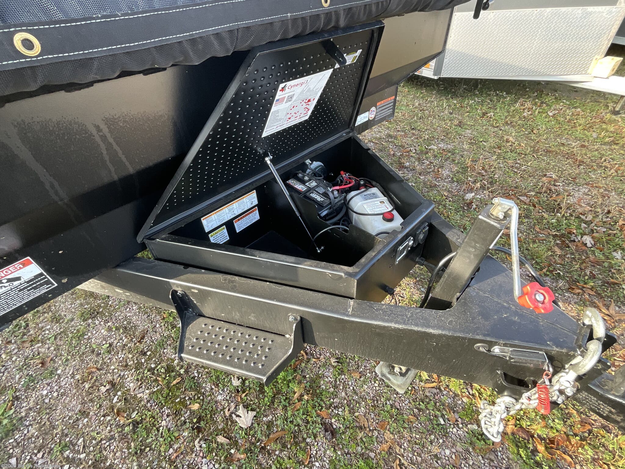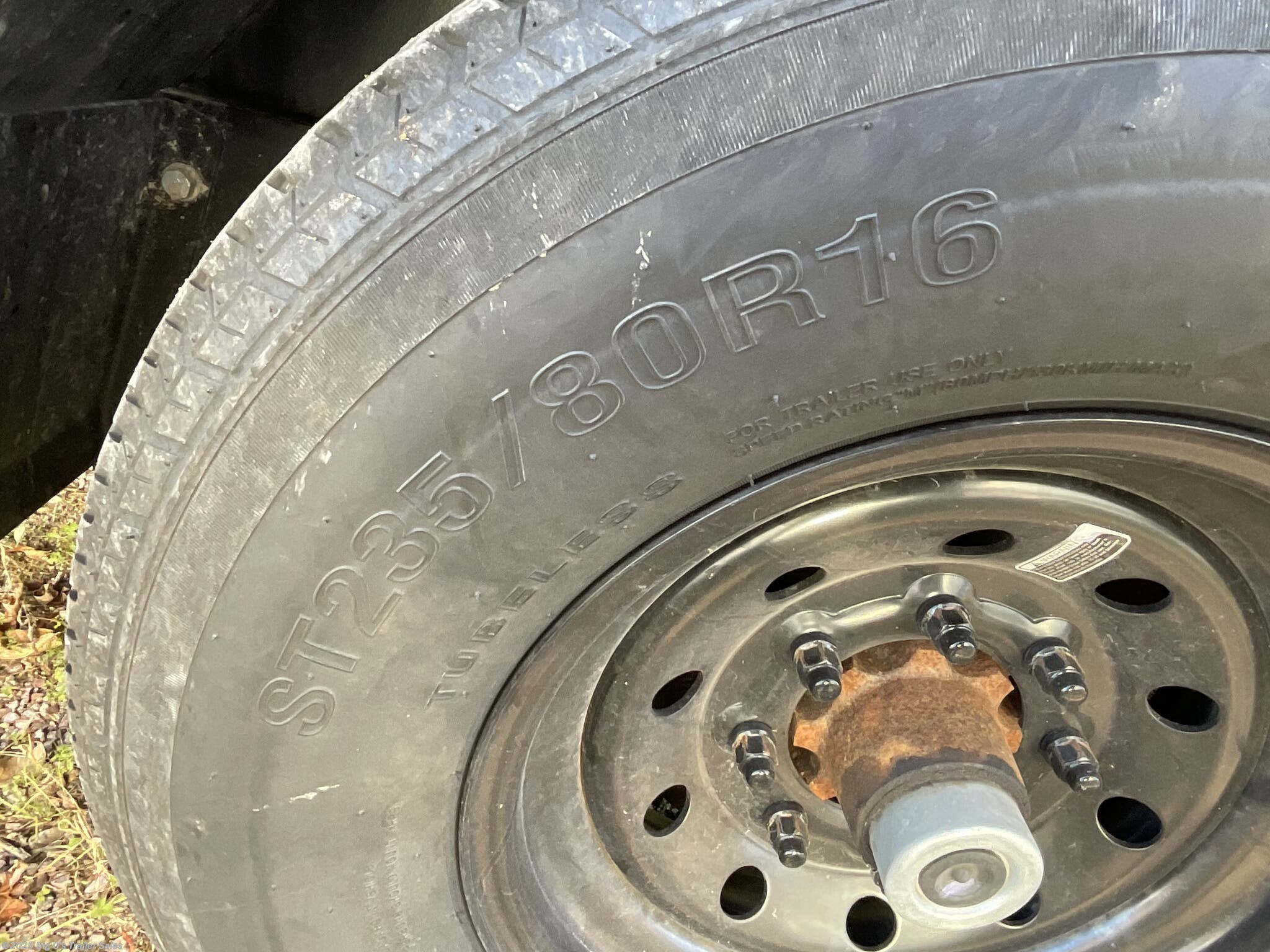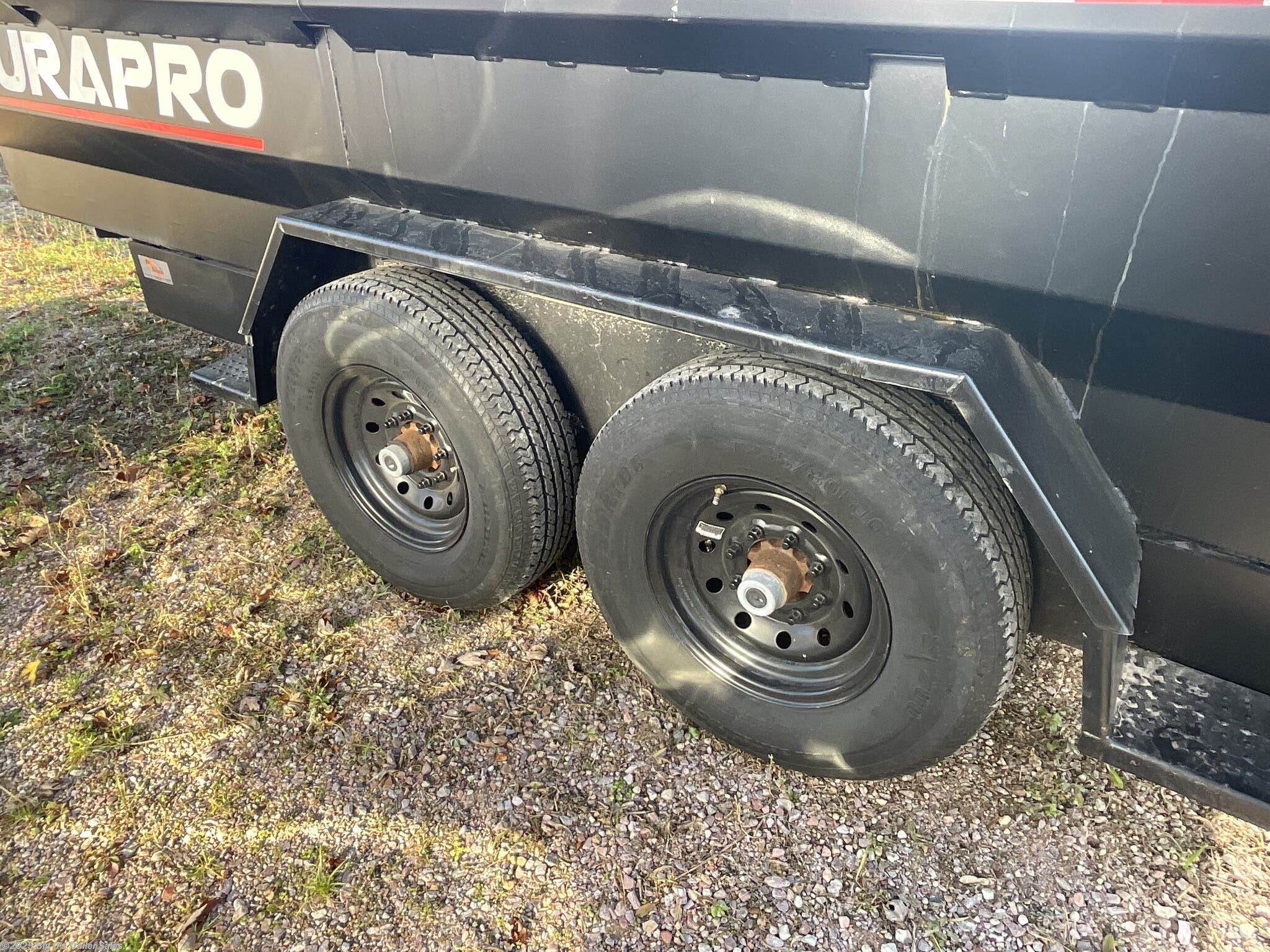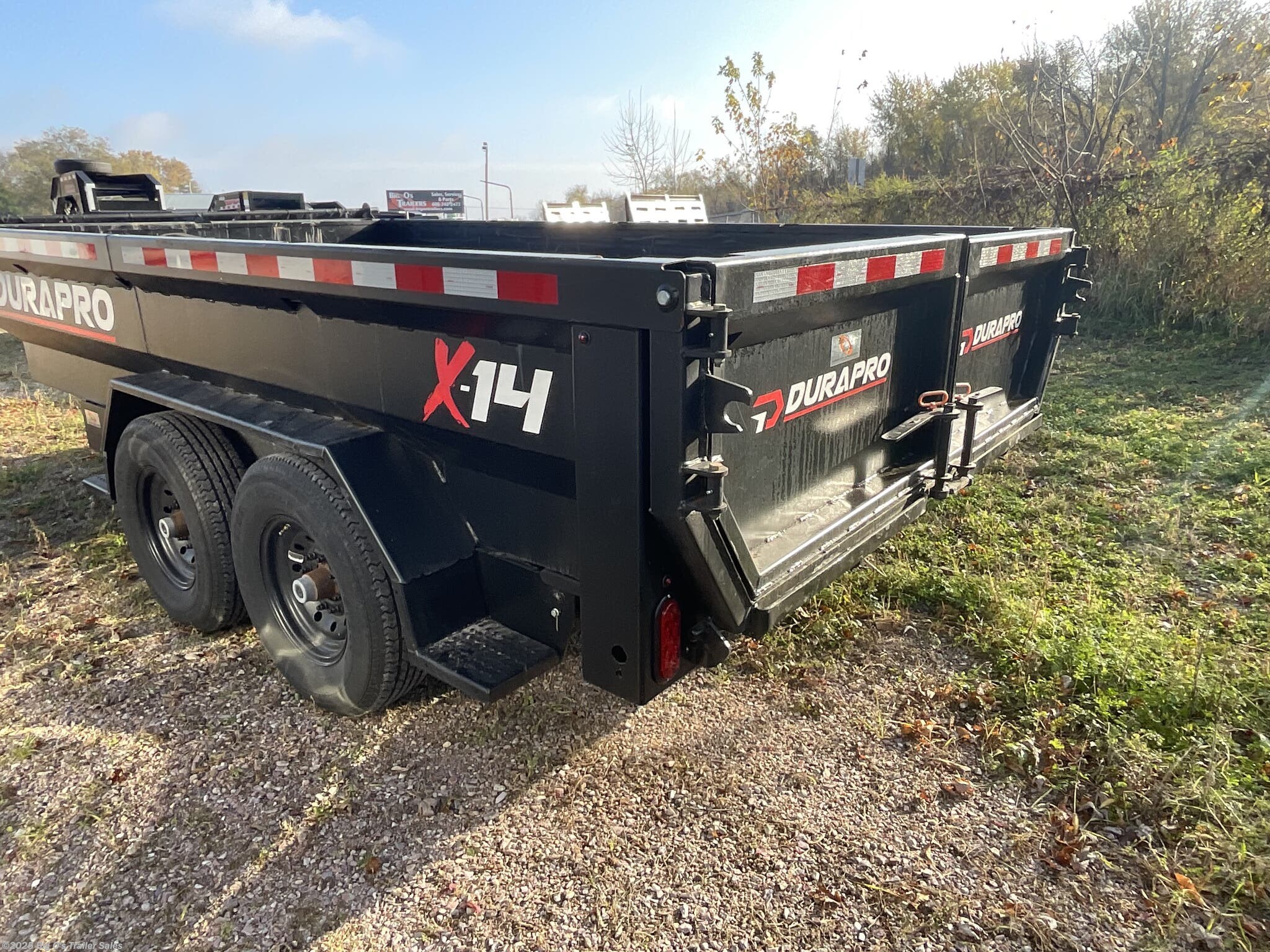 14' Dump Trailer Used Trailer GVWR 15,400# Ramps Tarp Tie Downs 4- D-rings Adjustable Coupler Corded Remote Power Down Hydraulic Pump Self Adjusting Brakes 235/80R16 LRE TED Lights