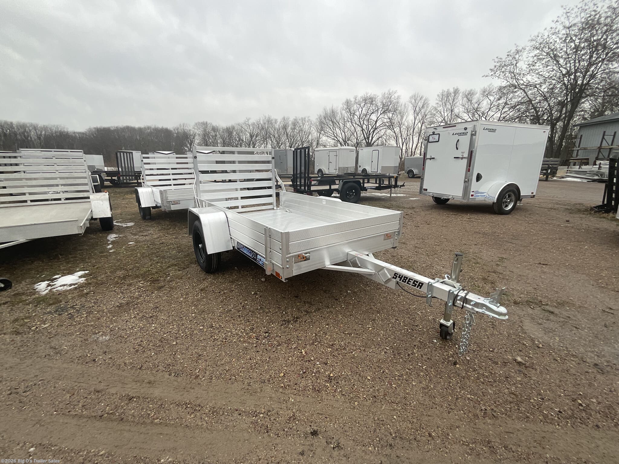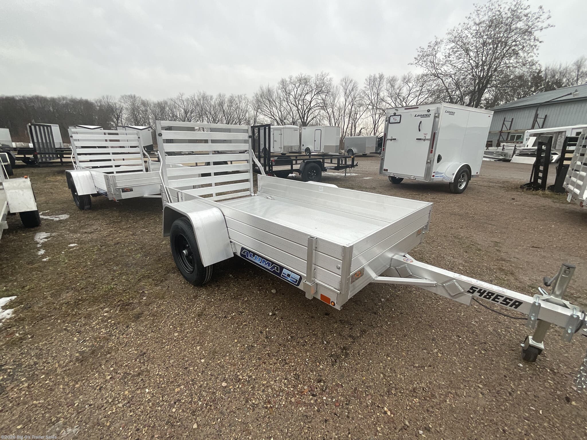 548ESA-S Utility Trailer 4'6"X8' 2,000# Rubber Torsion Axle - No Brakes - Easy Lube Hubs St175/80R13 w/ Steel Wheels 12" Solid Side Kit Aluminum Fenders Extruded Aluminum Floor 6" Front Retaining Bumper A--Framed Aluminum Tongue 48" long w/ 2" coupler 4) stake pockets (2 per side) 4) tie downs (2 per side) Swivel Tongue Jack LED Lighting Package Aluminim Tailgate
