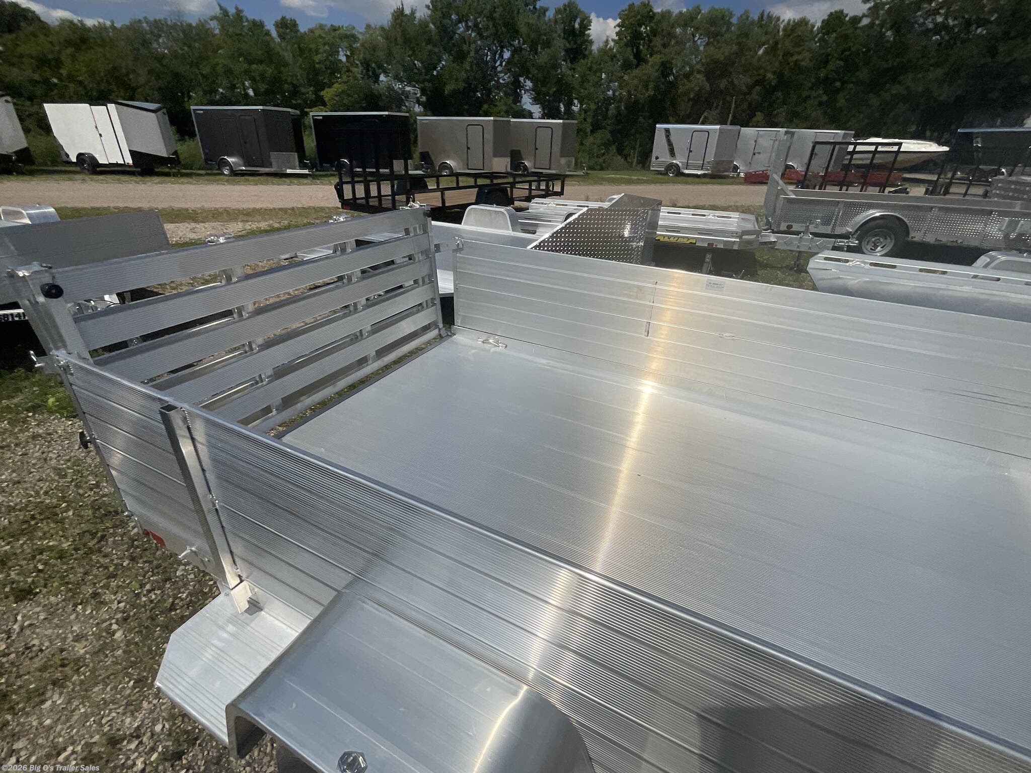 This model boasts a 10-foot length, providing ample space for a wide range of cargo, with an overall width of 93.5 inches and a bed width of approximately 68.5 inches. The aluminum floor and fenders deliver a lightweight yet sturdy frame, ideal for enduring tough outdoor conditions. The trailer's gross vehicle weight is 2,200 pounds, with a dry weight of about 450 pounds, facilitating easy towing behind most vehicles. Its aluminum wheels, radial tires, and rubber torsion axles ensure a smooth ride, reliability, and minimal maintenance.