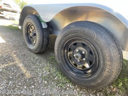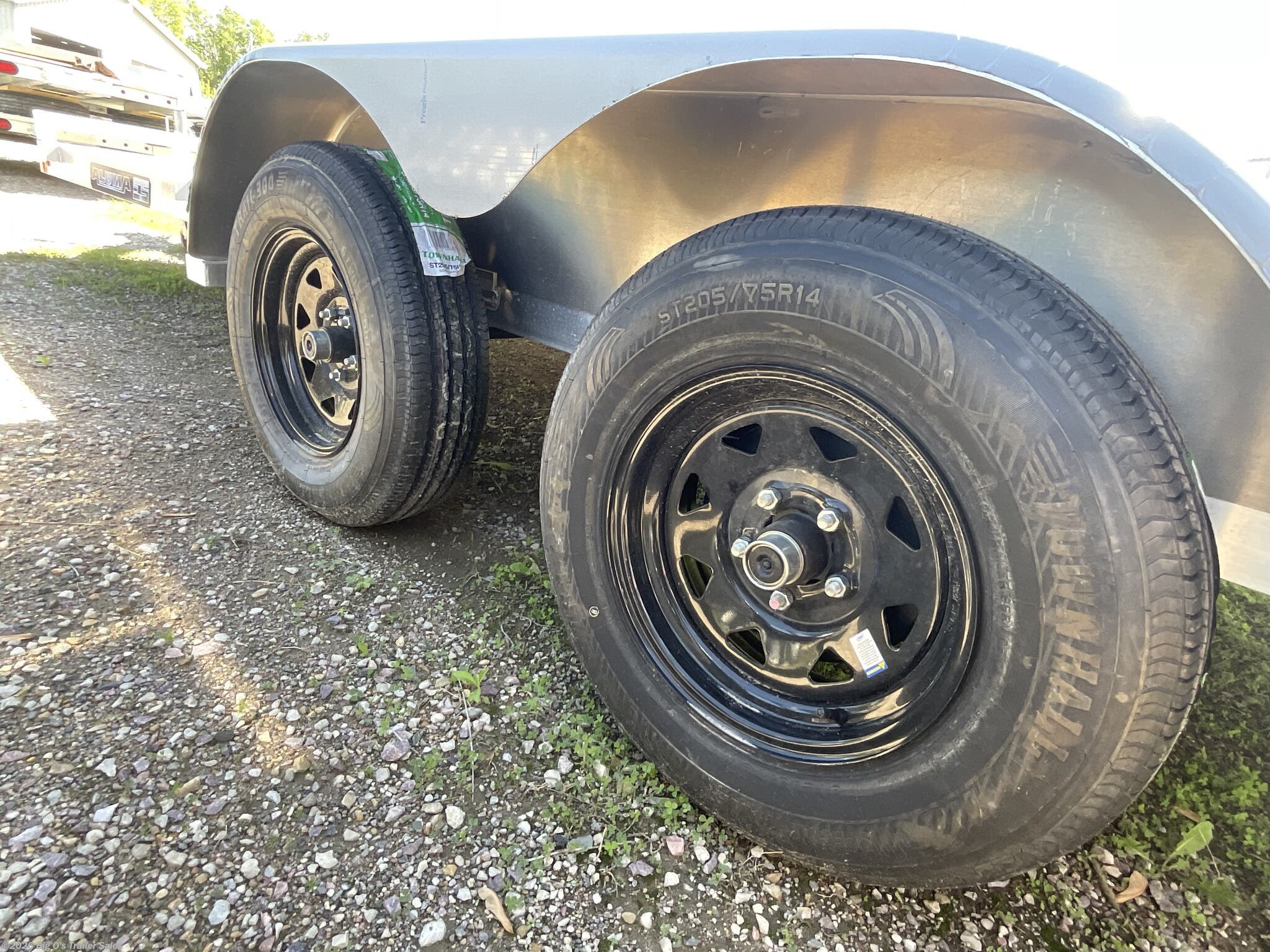 The trailer is designed to impress with black steel wheels that blend durability with style. It features a removable aluminum floor for easy cleaning and versatility. The A-frame aluminum tongue measures 48 inches long and is equipped with a 2 5/16 inch coupler for secure attachment to your vehicle.