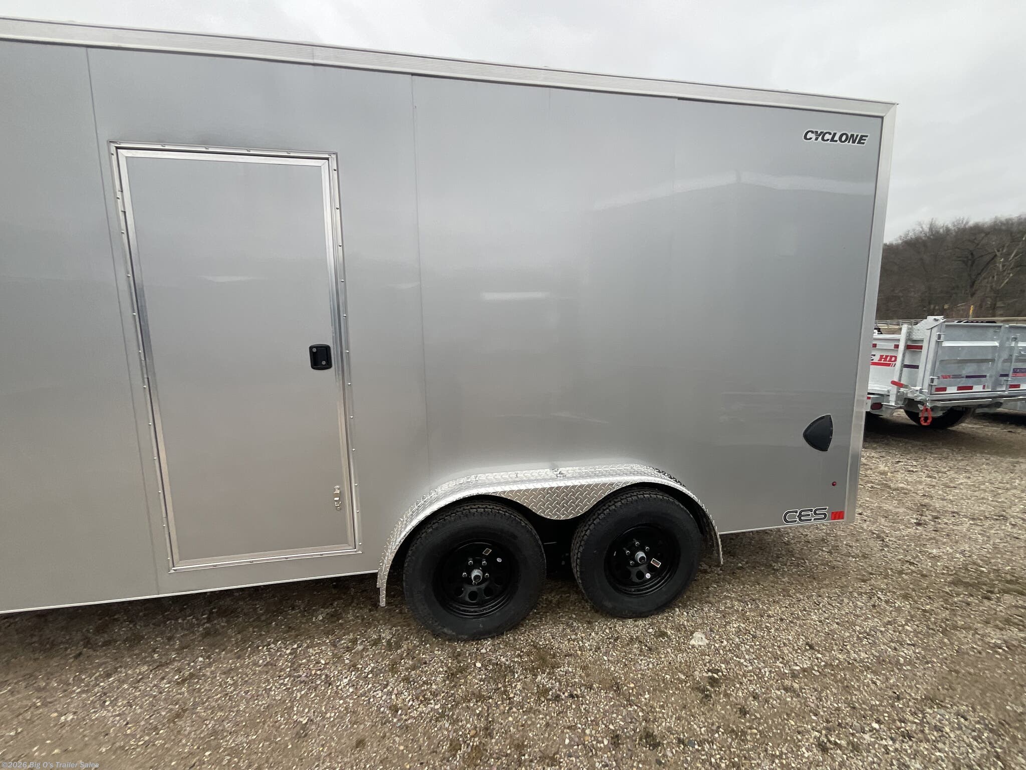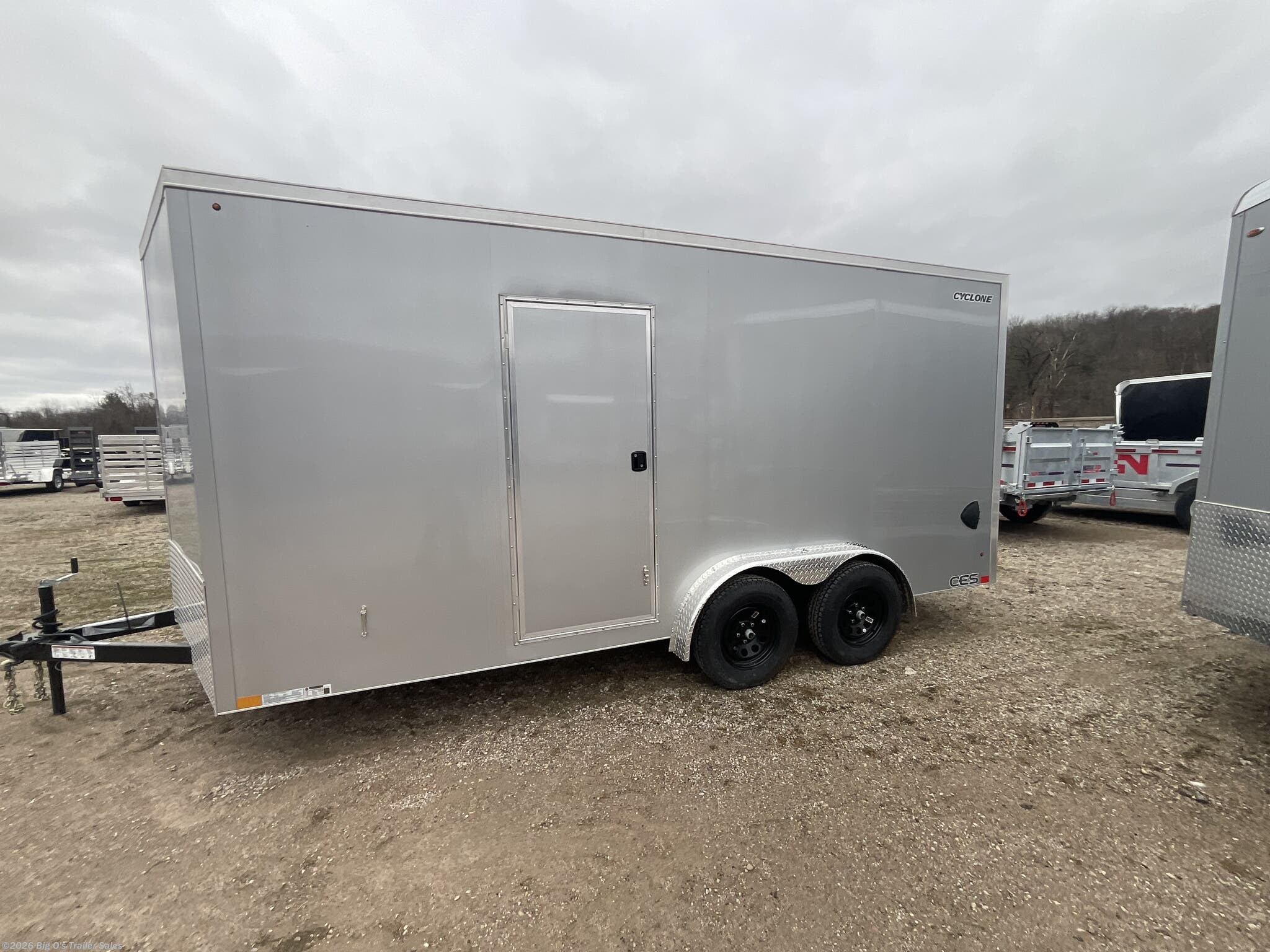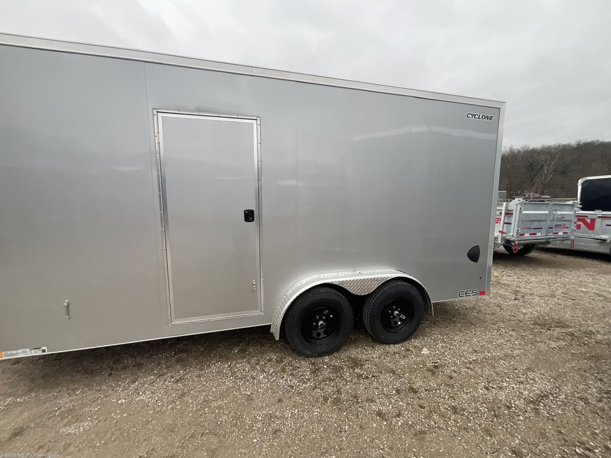 2026 CYCLONE ES V-NOSE 7.5X18CESTA35 SILVERFROST G345 +6" HEIGHT 3500# 5BOLT SPRING BRAKE AXLE ST205/75R15 STEEL BLACK 2 5/16 COUPLER 2000# JACK WITH DROP LEG FOOT 7 WAY ROUND 8' REAR RAMP WITH STD FLAP 4-1000# DRINGS INSTALLED