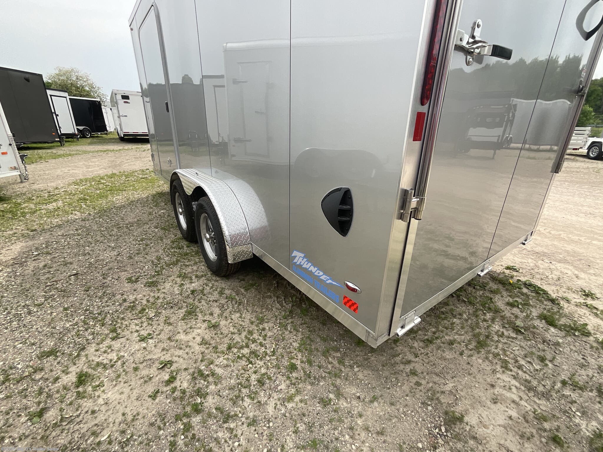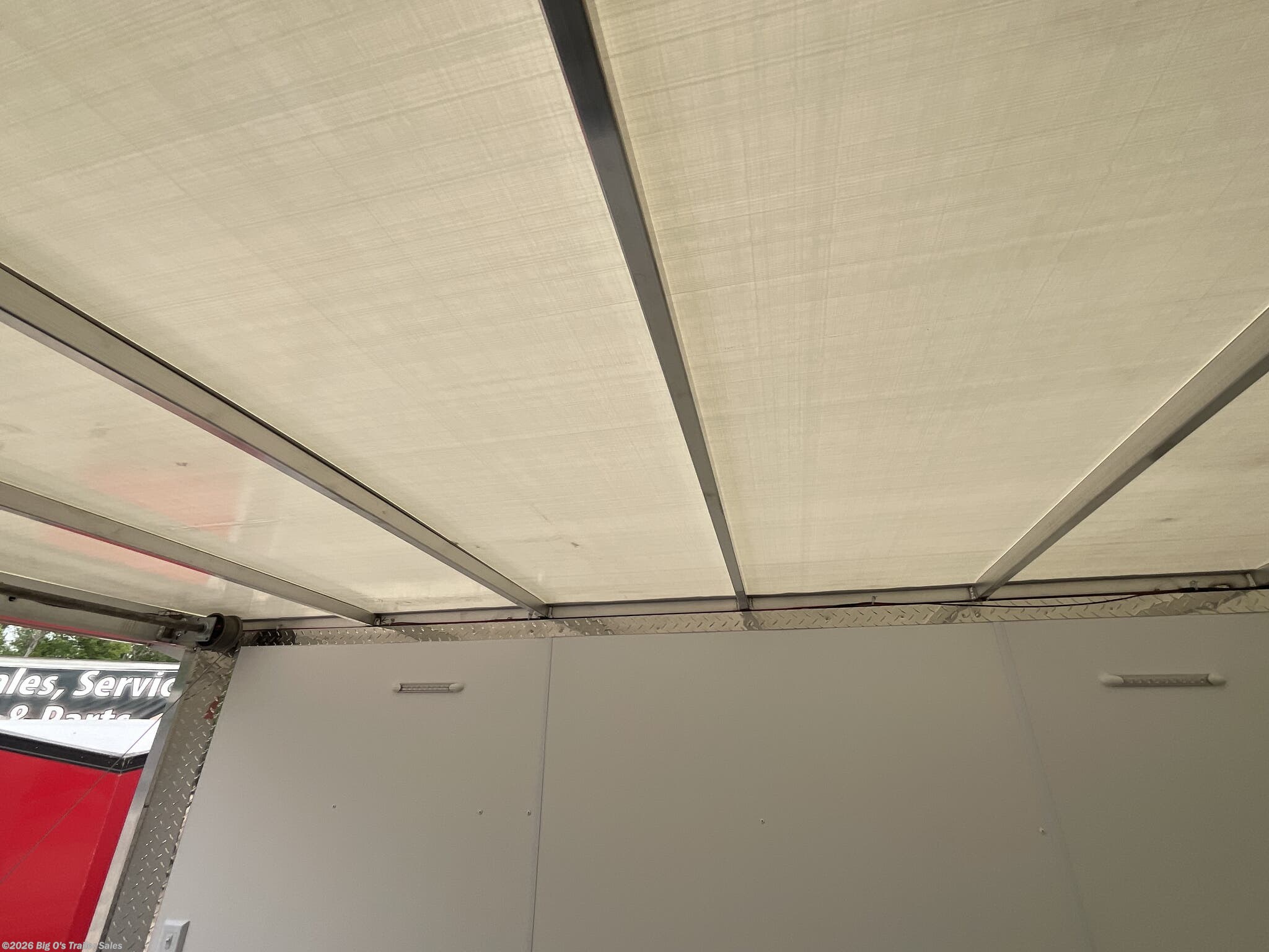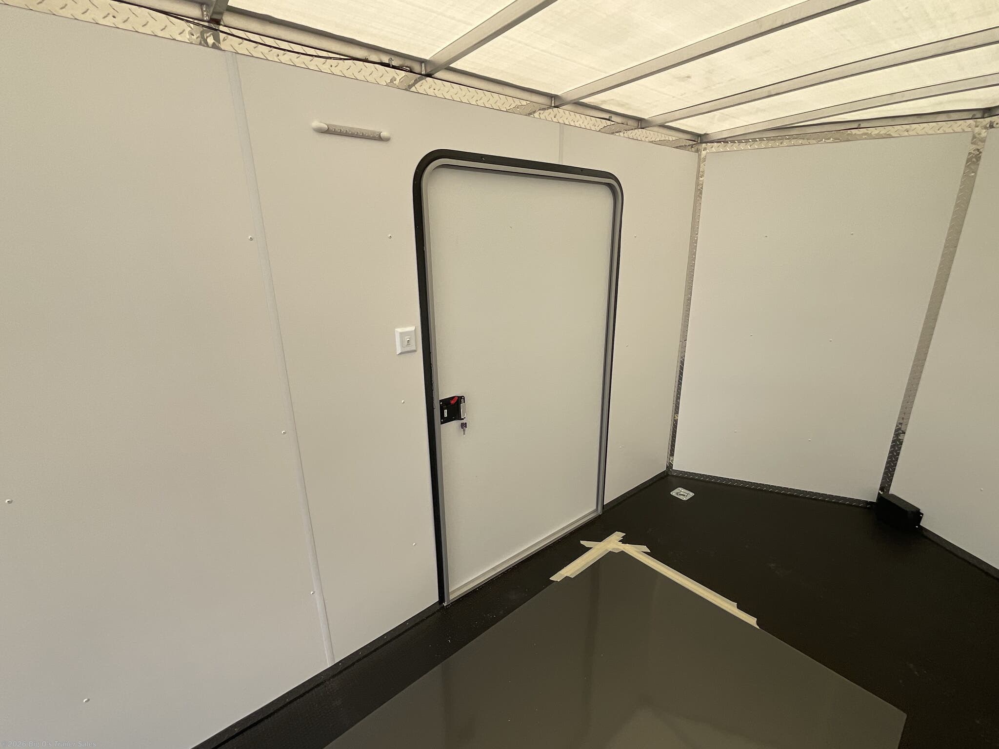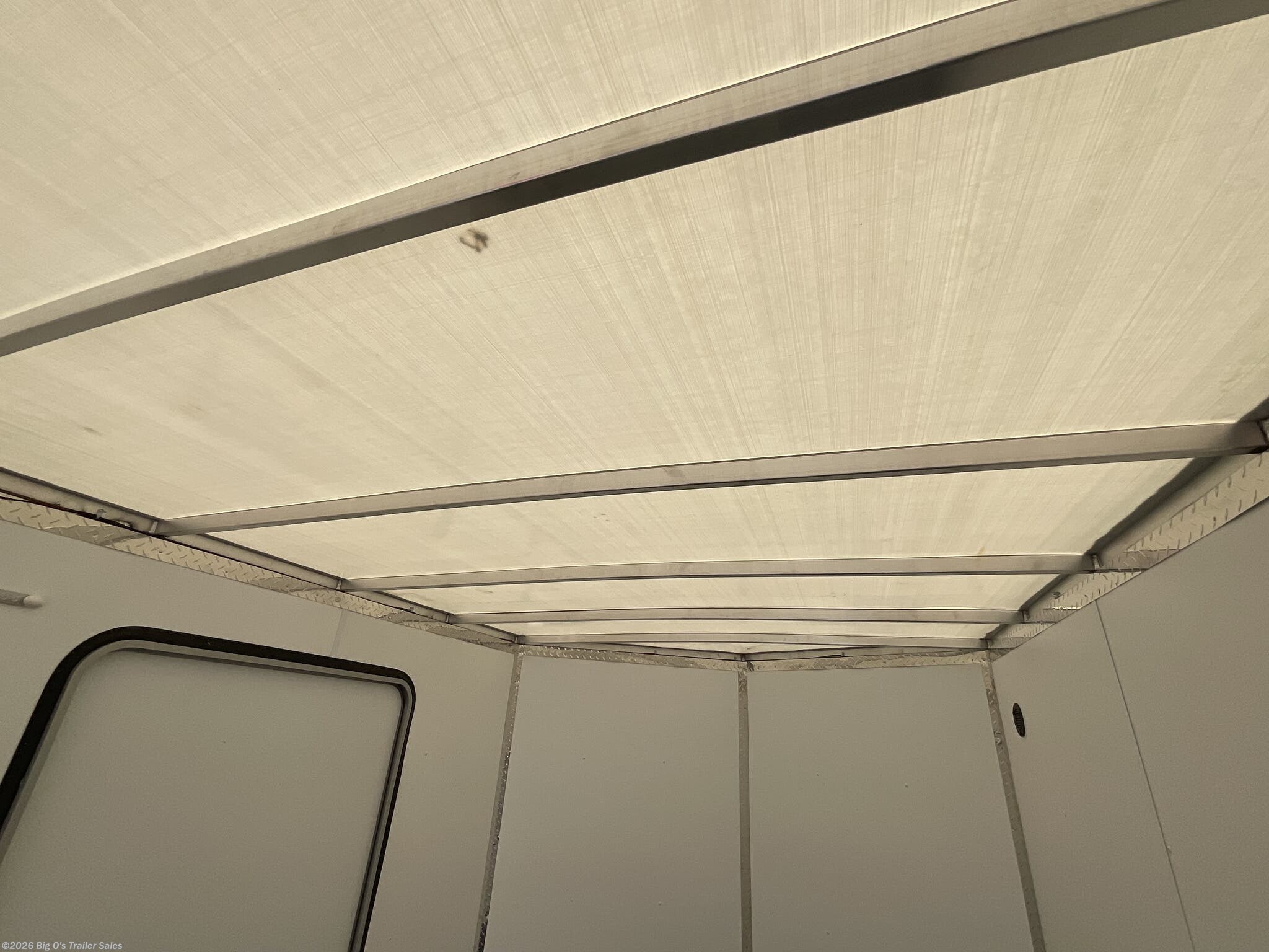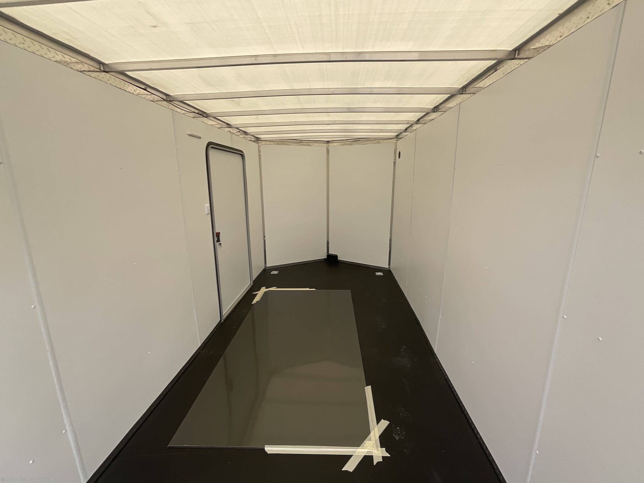 This in-stock 2026 model showcases a sleek Silver Frost exterior, enhancing its modern appearance and allowing it to stand out on any lot or road. The trailer features a translucent roof, providing natural light inside, and a rear spoiler equipped with two 9-inch LED loading lights for improved visibility during loading and unloading. The rear ramp door with superstratum flooring ensures smooth and easy access for possessions or equipment, making loading effortless. The trailer is equipped with a 2 5/16-inch coupler and a 7-way light connector for easy towing compatibility.