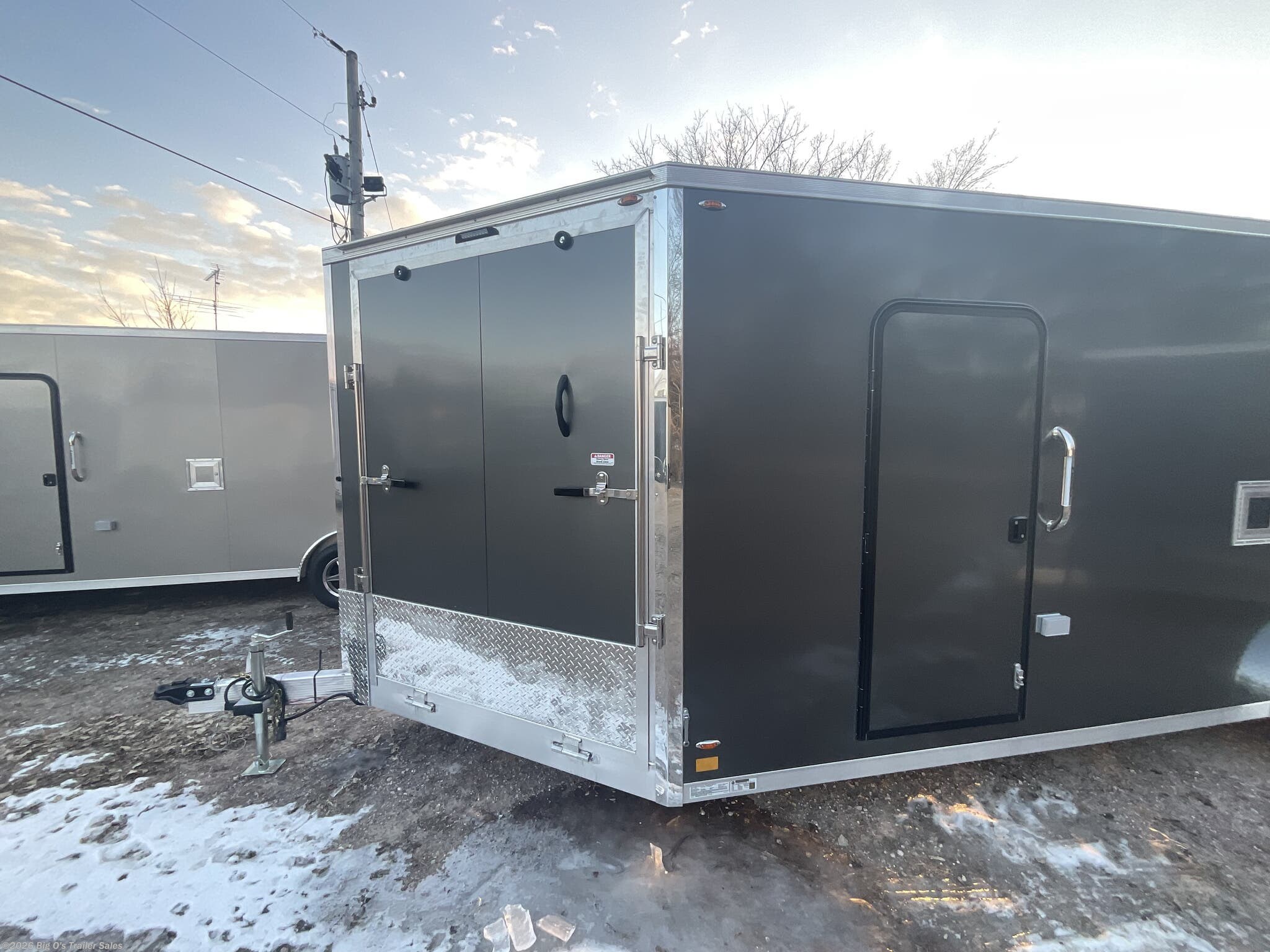 2026 EXPLORER SNOW/ATV G345 +6" HEIGHT 3500# 5 BOLT TORSION BRAKE AXLE ST205/75R15 2 5/16 STAB JACKS 7 WAY PLUG FRONT RAMP DOOR & REAR RAMP DOOR WITH SPORT FLAP 2 ACCESS DOORS LEGEND GRAB HANDLE WHITE WALLS & WHITE CEILING 8 1000# DRINGS INSTALLED - 4 SLED LAYOUT OVERHEAD CABINET W/CLOTHESBAR 4 - 8" LED DOME LIGHTS LED TAIL LIGHTS FRONT RAMP LED LOADING LIGHT 12V JUNCTION BOX 110V BRONZE PKG