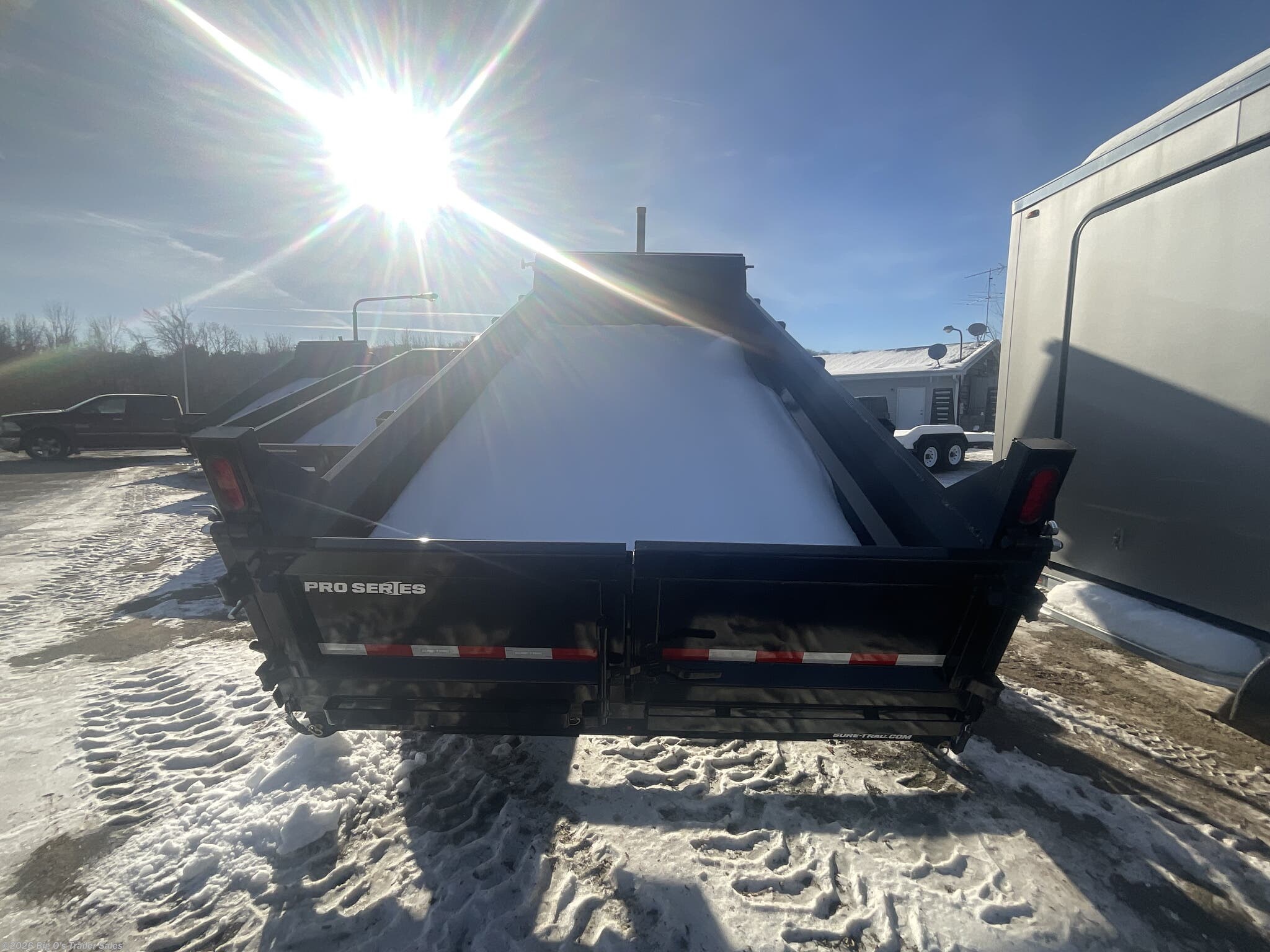 7X16 Pro Series Telescopic Dump 15.4K 2-7K Slipper Spring Brake Axles St235/80R16E 10-PR Hydraulice Components: Power UP, Gravity Down On-Board Charger 4 Amp (110V Plug in) Tarp Kit Installed Adjustable 4 bolt pintle Combo Barn Door Spreader Gate W Cambar