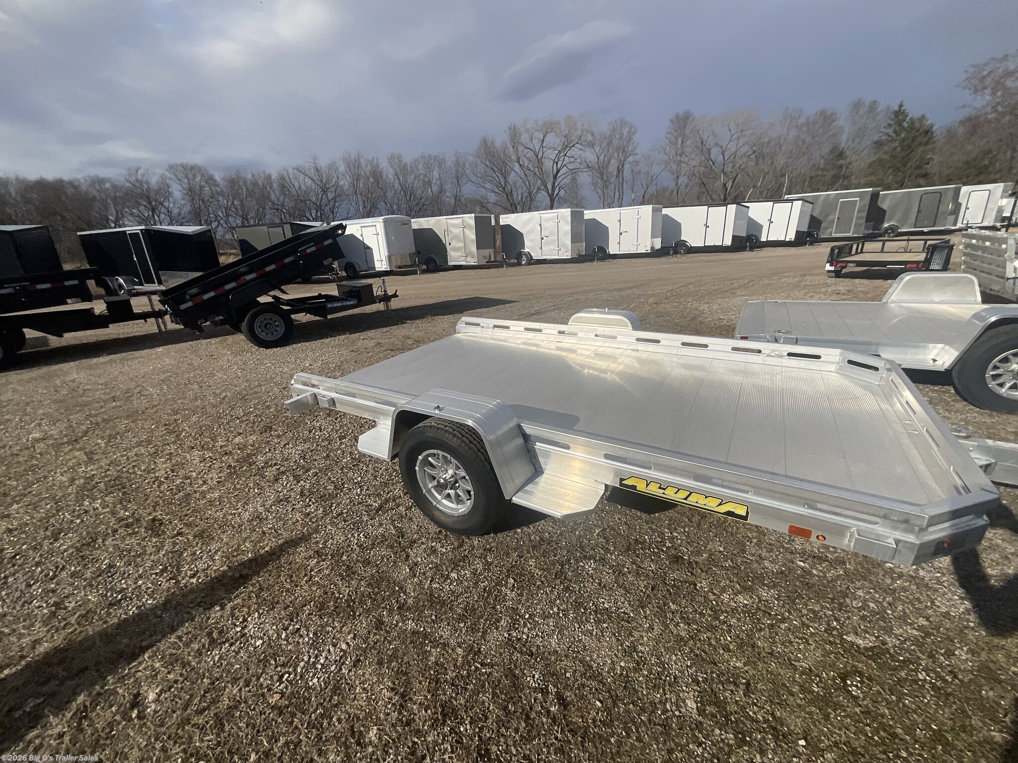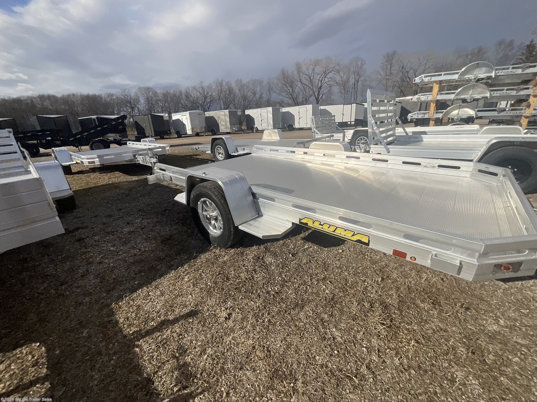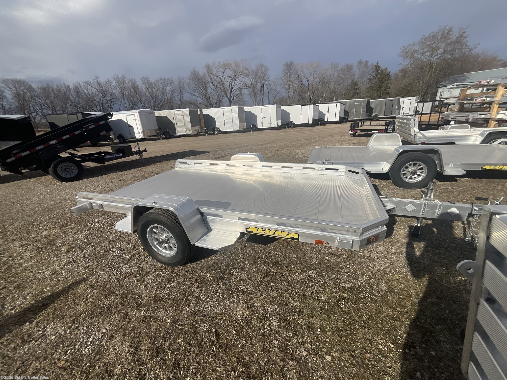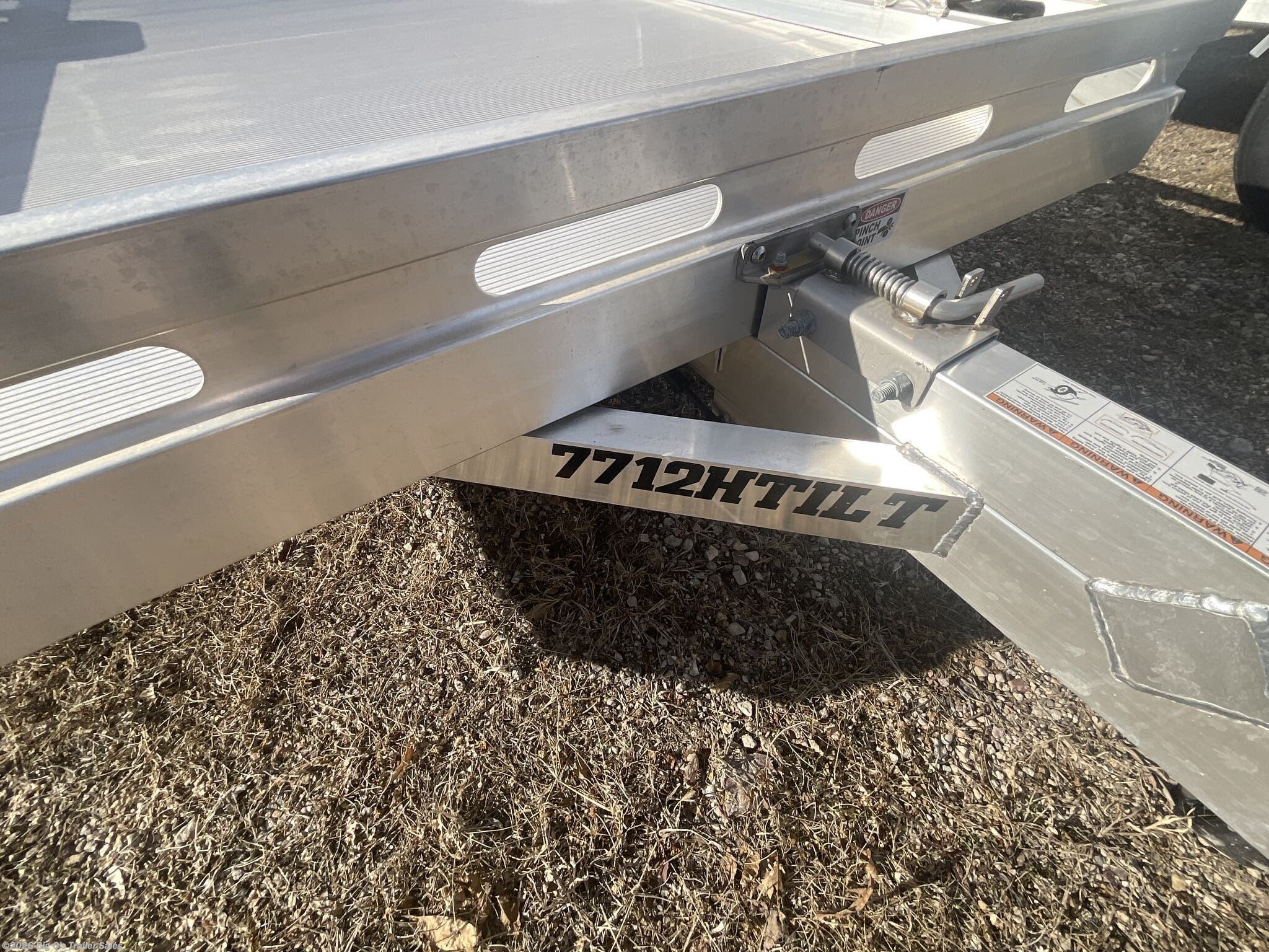 7712H TILT-S 3500# RUBBER TORSION AXLE NO BRAKES EASY LUBE HUBS ST205/75R14 ALUM WHEELS ALUM FENDERS EXTRUDED ALUM FLOOR 8.5" FRONT & SIDE RETAINING RAILS AFRAME ALUM TONGUE 2" COUPLER 4 STK PKTS 4 TIE DOWN LOOPS TONGUE HANDLE RECEPTACLE HOLDER FENDER STEPS SWIVEL JACK HYDRAULIC DAMPENER HYDRAULIC LIFT FOR GAS SHOCK
